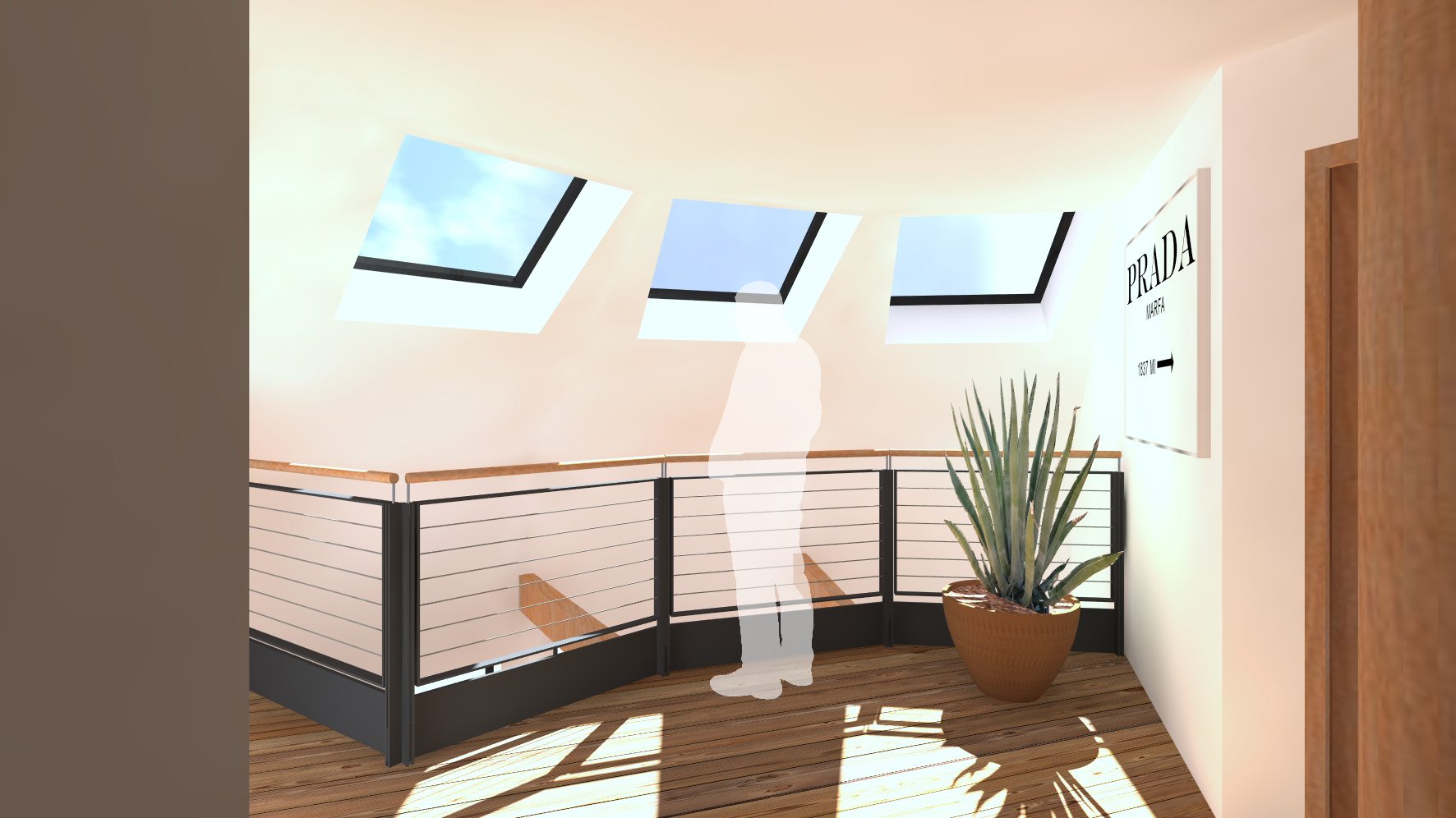 Le volume présenté dispose d’une double toiture avec un volume haut et un volume bas.
