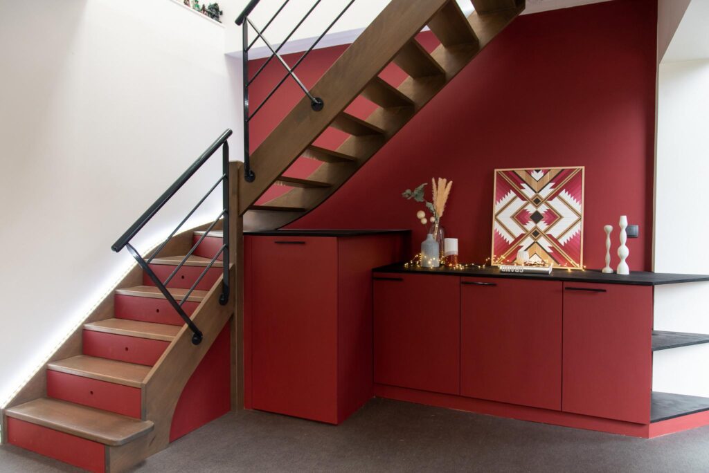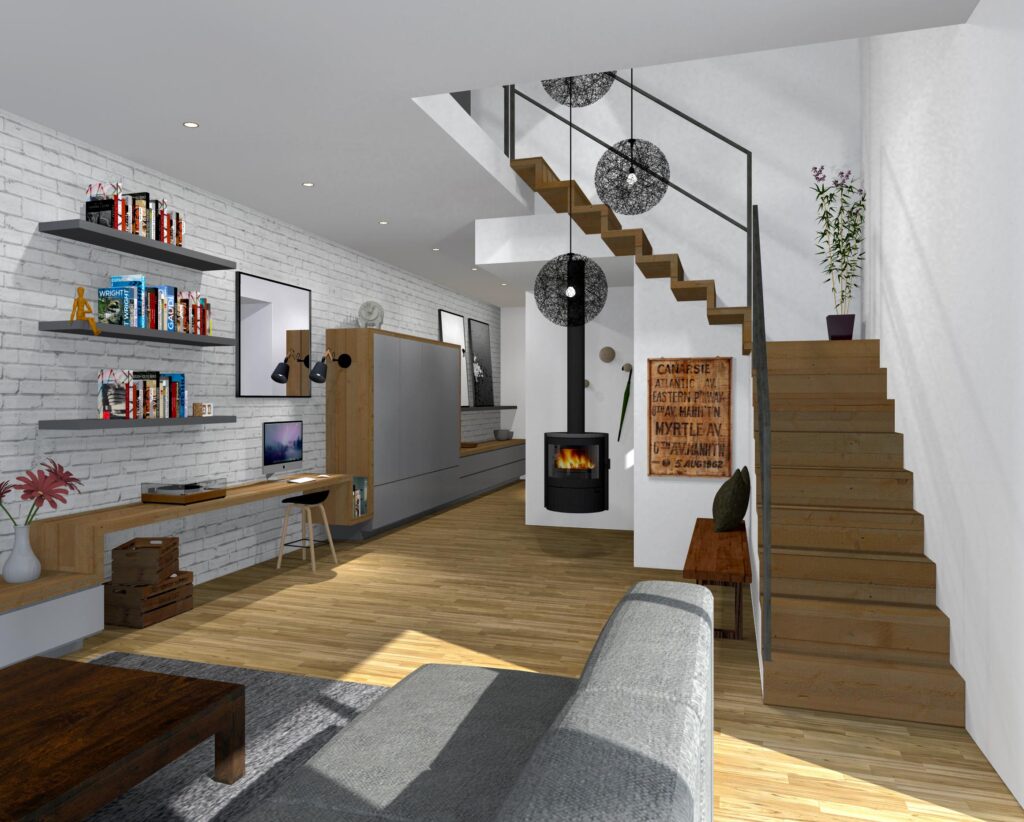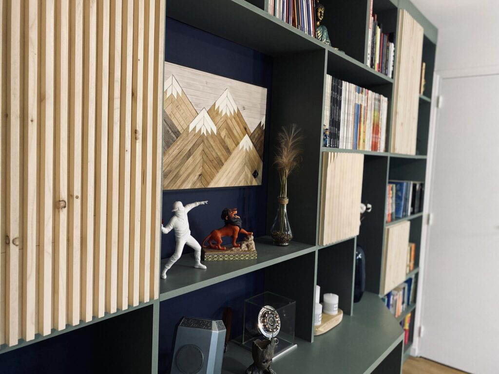 Suite à un achat de maison individuelle dans la commune de Darnétal, les clients disposaient d’un pan de mur entier à aménager. Le but étant d’optimiser le rangement afin de créer une bibliothèque et de ne pas gêner la circulation du Rez-de-chaussée.