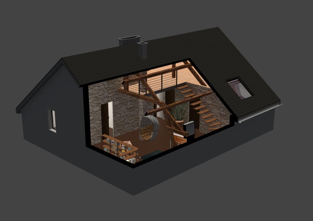 Le projet présente une maison simple traditionnelle avec une toiture à deux pans.