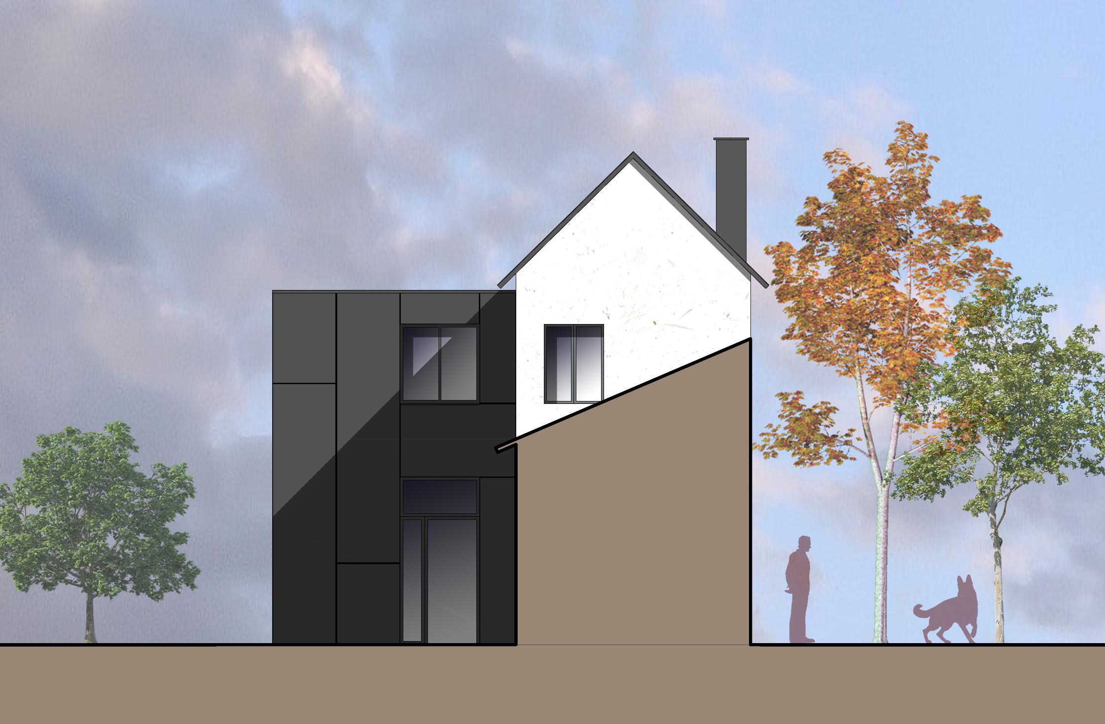 Maison pavillonnaire traditionnelle dans la banlieue résidentielle d’Amiens, le projet voulait créer une originalité pour se démarqué du voisinage.