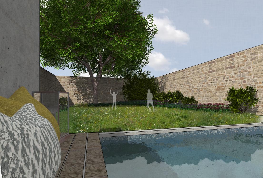L’idée était de réaménager tous les espaces extérieurs; depuis l’espace urbain à l’entrée jusqu’au fond de la parcelle.