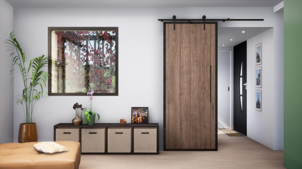Ce projet prend place chez les clients suite à l’acquisition d’un poêle à granules. Il fallait imaginer un espace pouvant contenir tout le stock de granules de façon discrète.