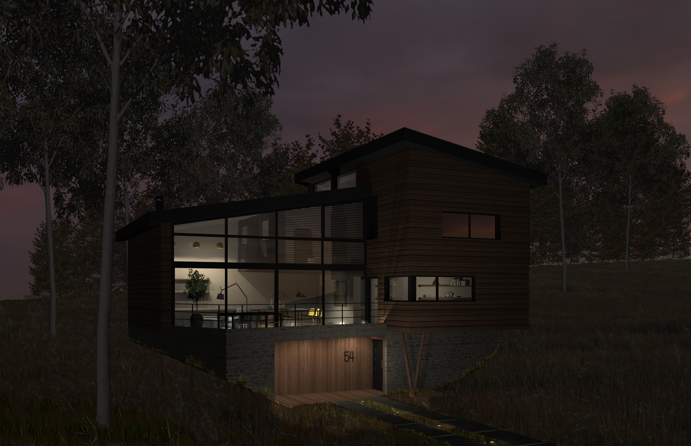 Le rapport à la nature est une des priorités dans la demande de conception. Le volume de la maison doit s’adapter le plus possible au terrain pour permettre de s’y insérer de façon harmonieuse.