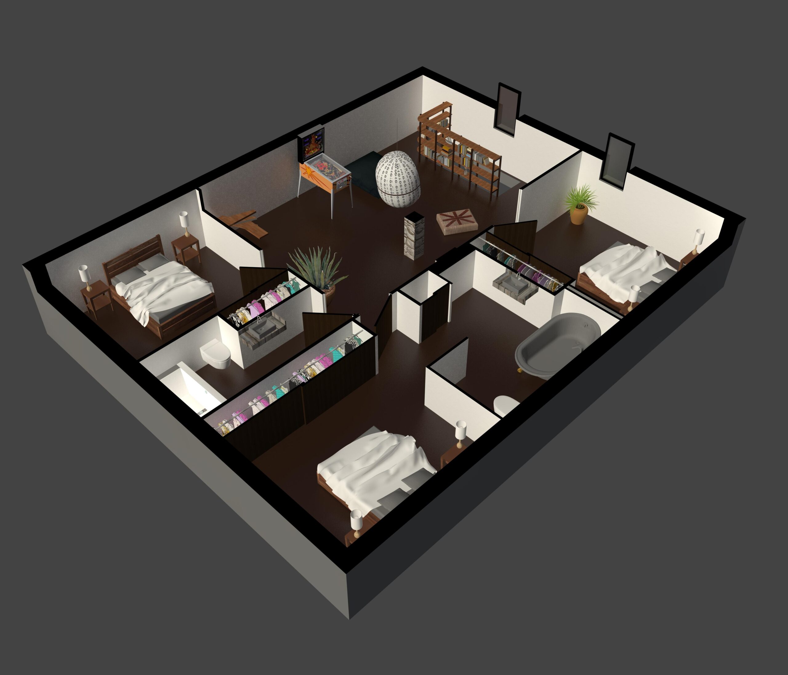 Ainsi les nouvelles chambres devaient être aménagées dans cet espace. Le but étant de ne pas avoir du tout d’espaces perdus. Le projet d’aménagement des espaces s’est poussé jusqu’au choix des matériaux pour chaque pièce.
