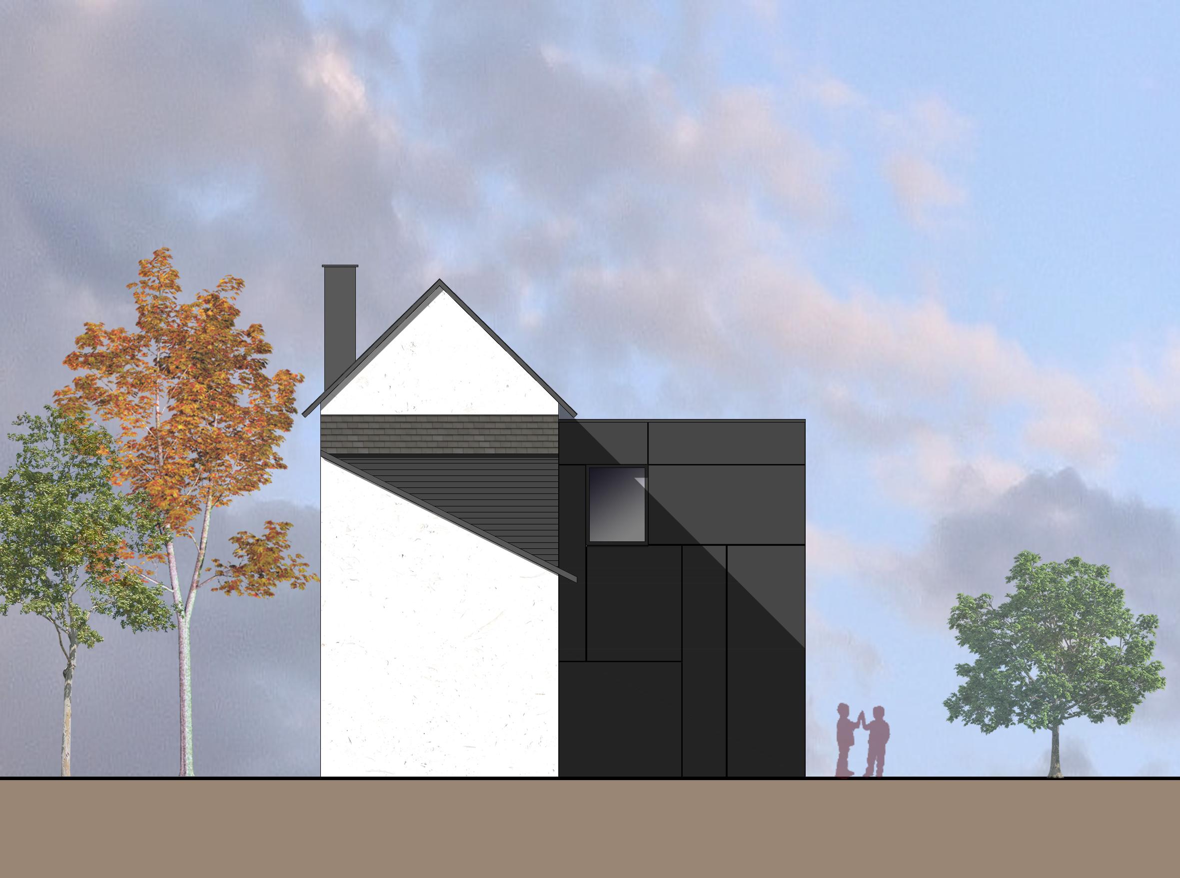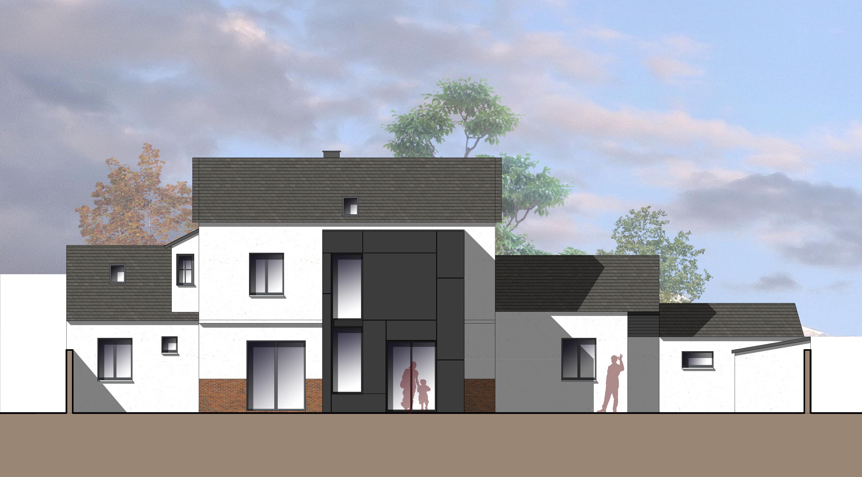 Sa forme et son implantation vers le jardin permet de changer complètement l’identité de la façade.