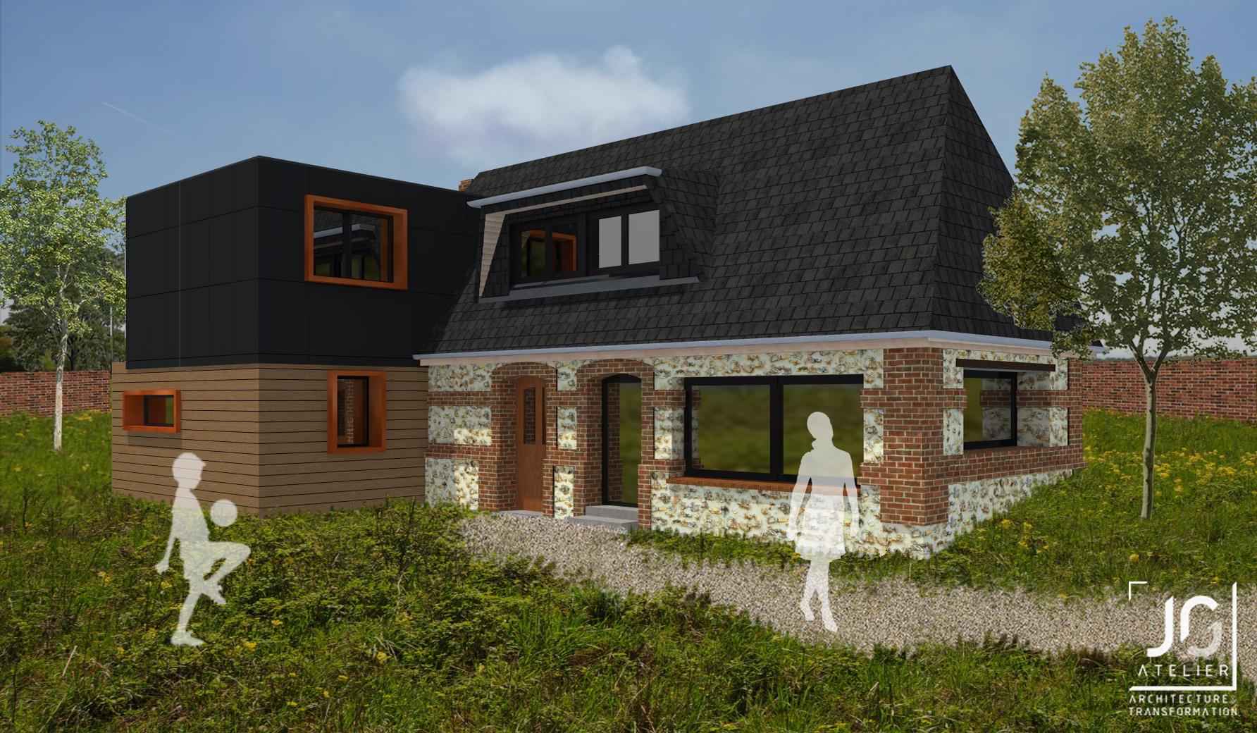 Maison de campagne en limite de parcelle, cette habitation possède des volumes trop petits pour ses propriétaires. Le but étant de mettre en valeur l’architecture ancienne et de conserver les ouvertures vers la vallée.