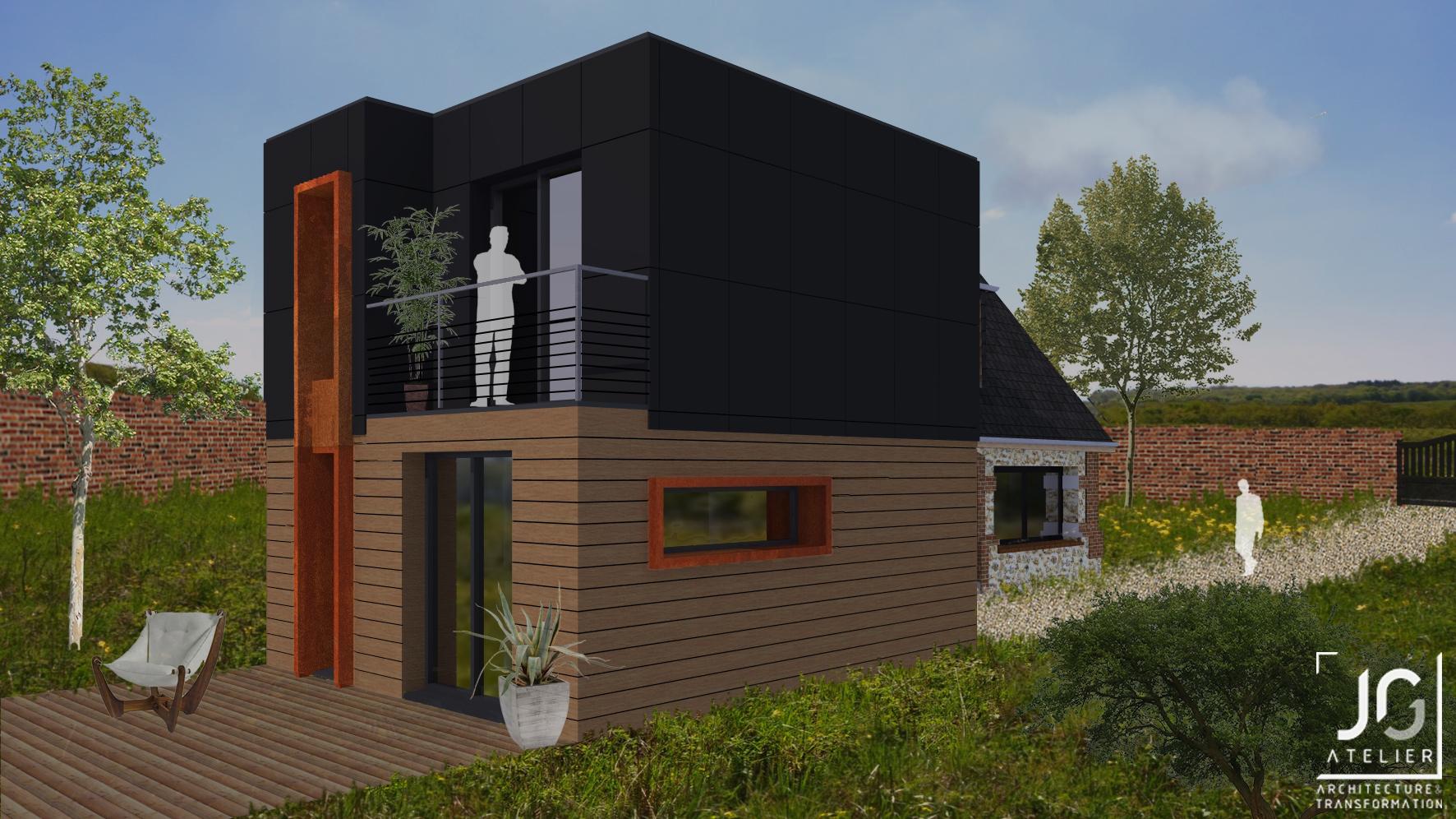 Les matériaux nobles comme le bois et le corten permettent de mettre en valeur le volume neuf.