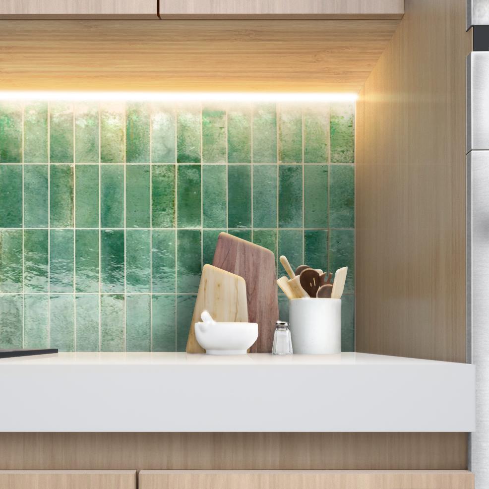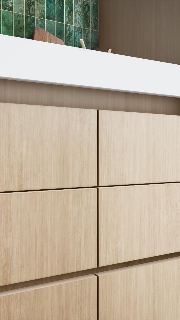 La conception de la cuisine sur mesure à été pensée par rapport aux clients qui souhaitent un grand volume donnant sur le salon séjour.
