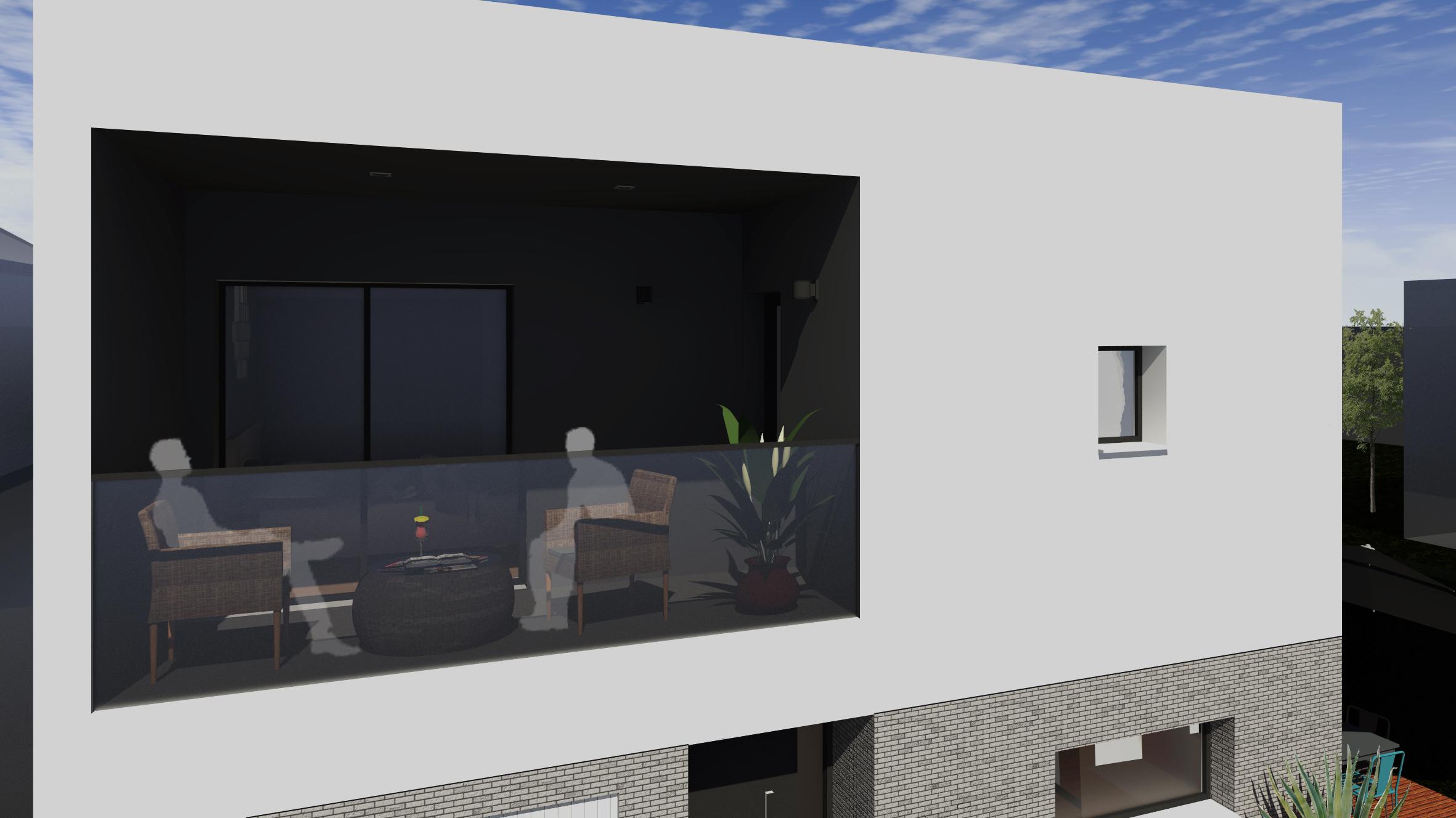 Les espaces annexes et techniques se situent dans le premier volume, au RDC, et les espaces de vie dans le second. Tout l’étage comprend les espaces de nuit. La liaison entre le RDC et l’étage se fait par un escalier éclairé naturellement avec un puits de lumière zénithale. Les espaces extérieurs comprennent une terrasse d’été et une terrasse d’hiver protégée des vents.
