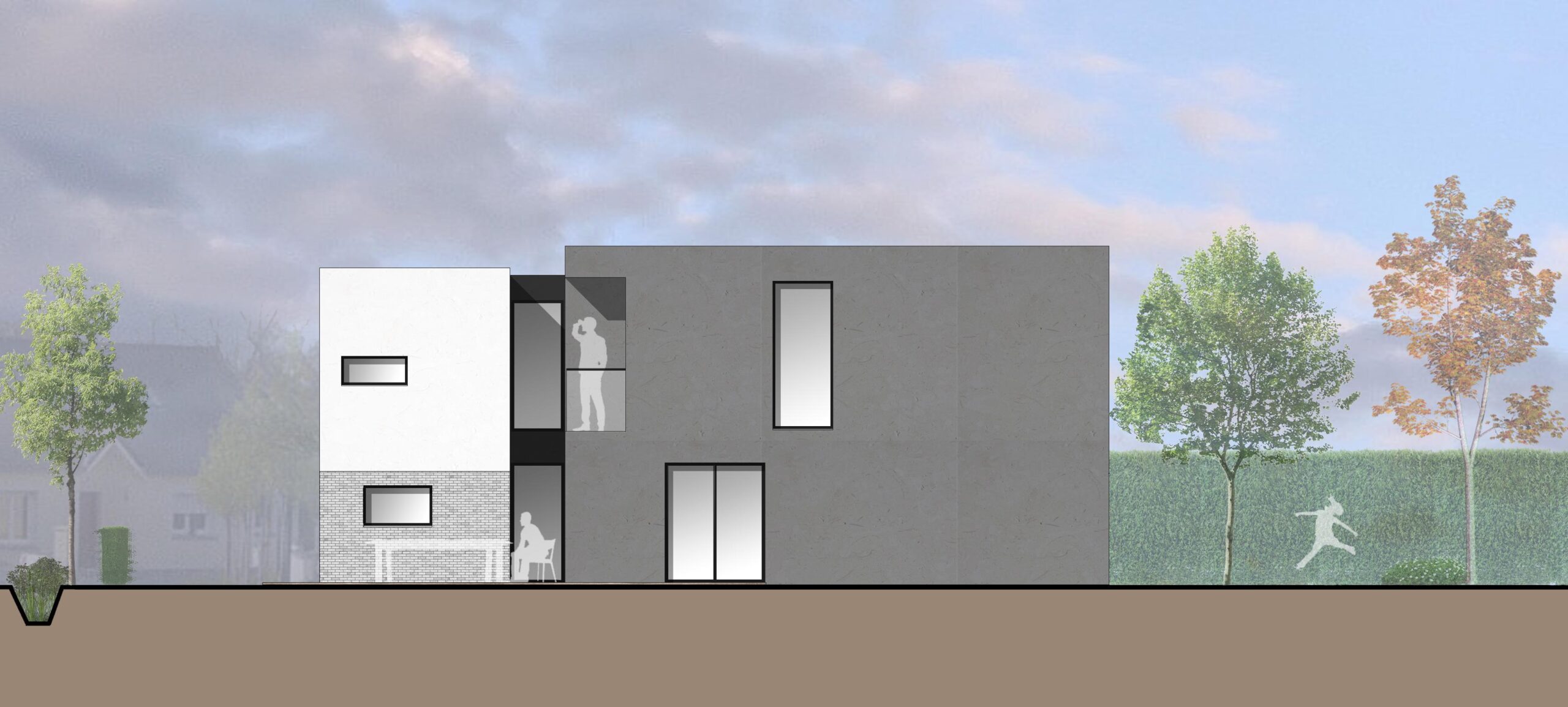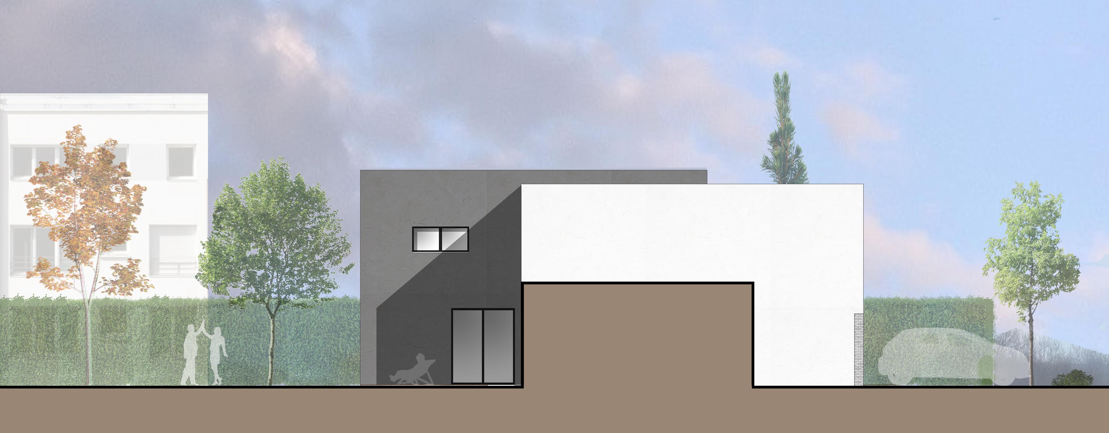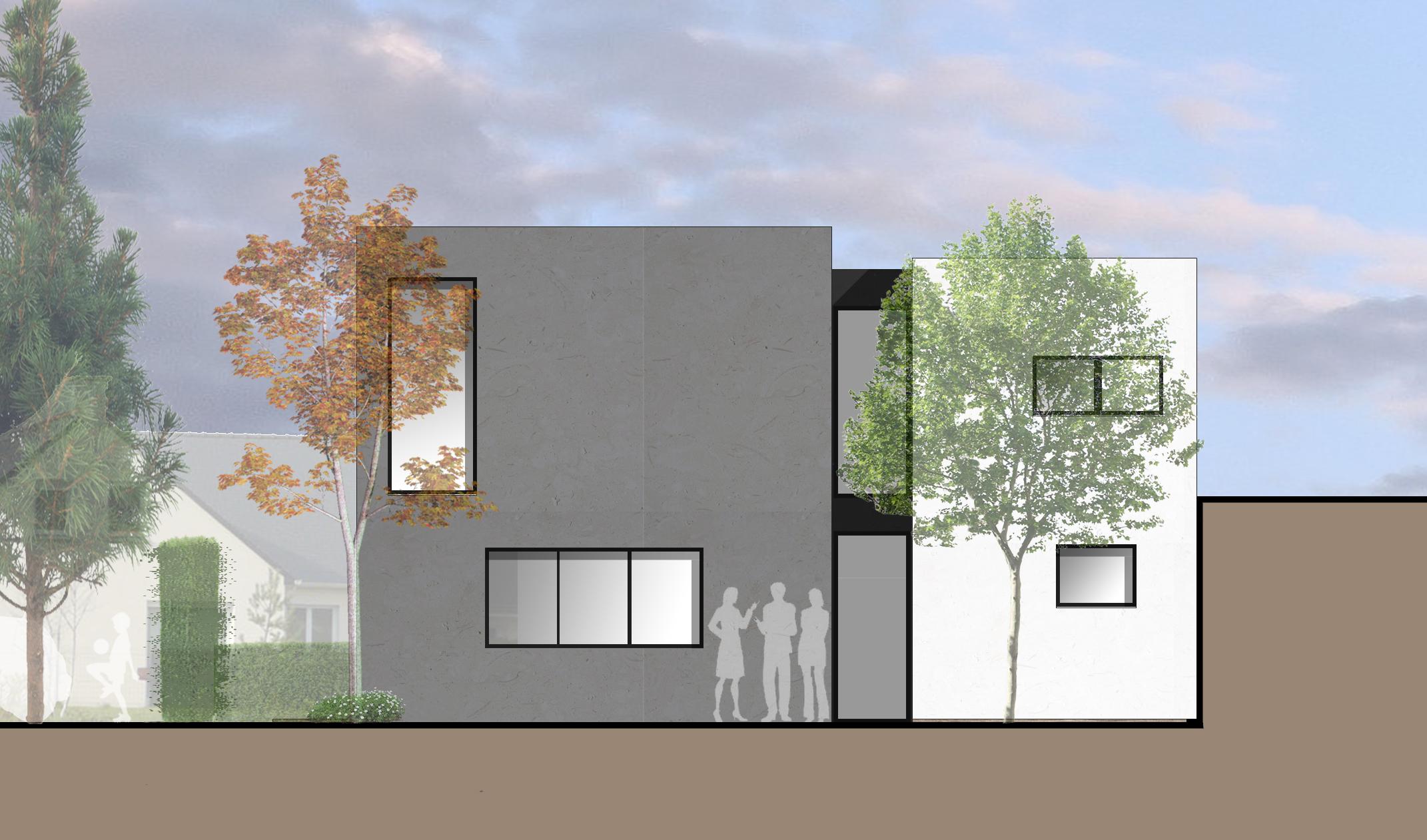 Ce projet présente une maison individuelle avec une toiture plate, située dans un lotissement. Deux volumes se dissocient grâce à une faille contenant de grandes ouvertures. Celle-ci permet d’éclairer naturellement tous les espaces de circulation.