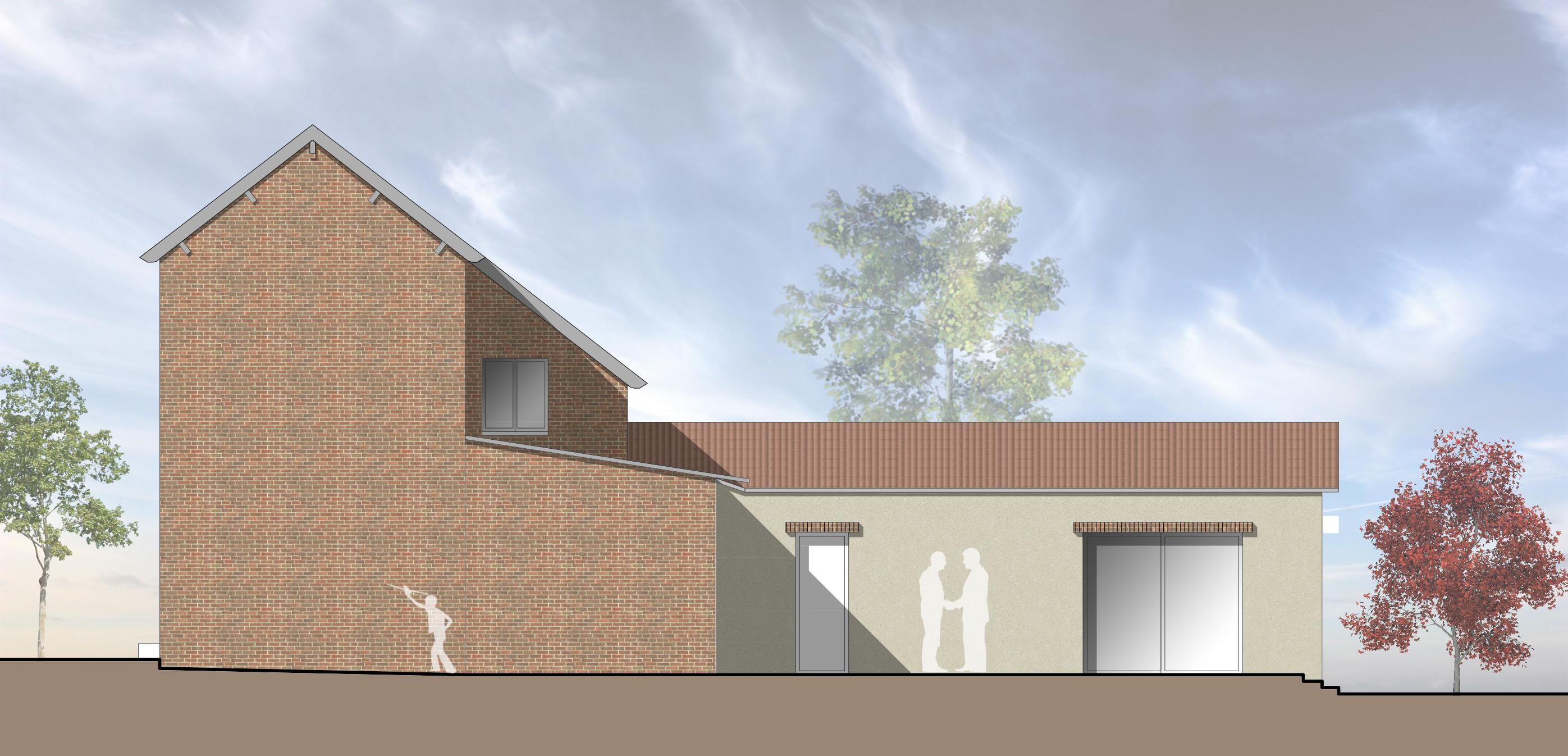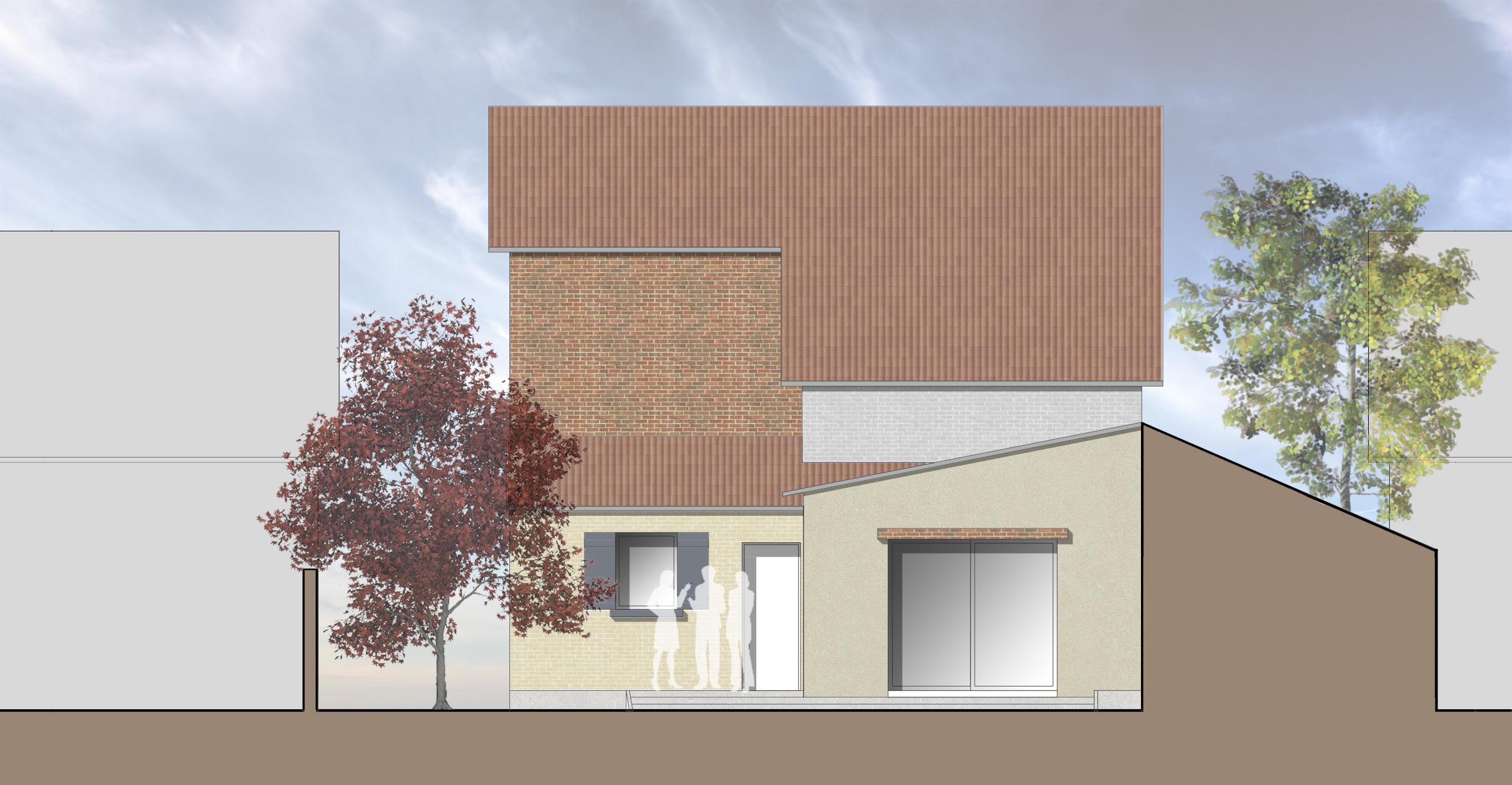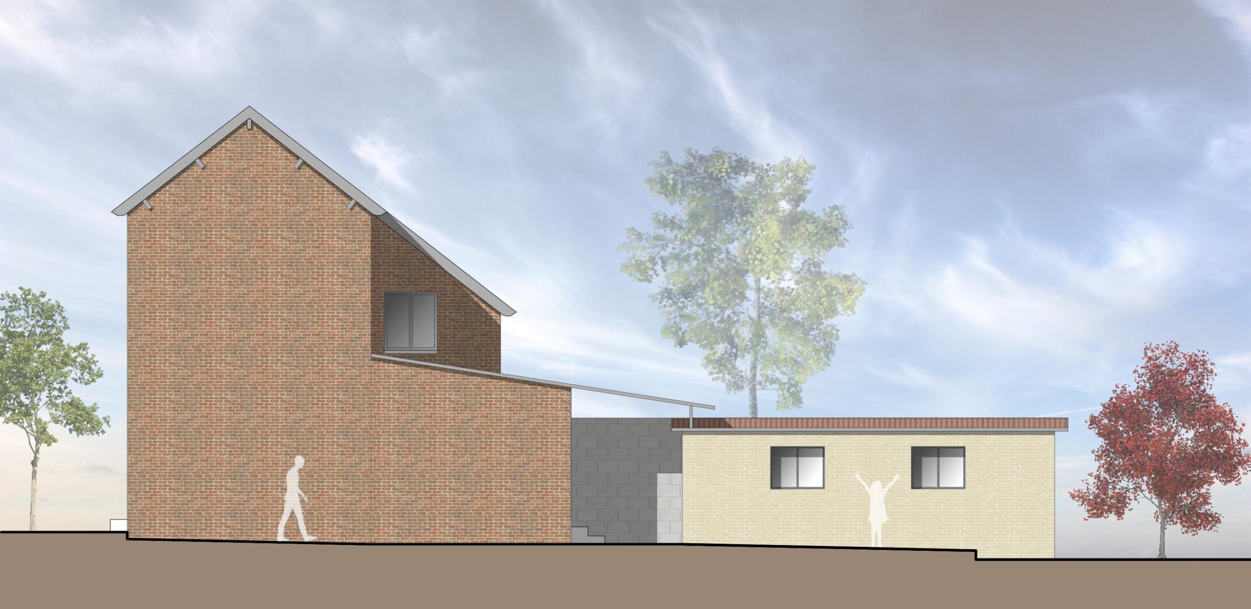 Le projet étant situé en zone protégée par les Architectes des Bâtiments de France, la couleur de façade a été reprise par rapport à l’existant. Les motifs en briques ont été mis en place pour conserver la matérialité présente sur le site.