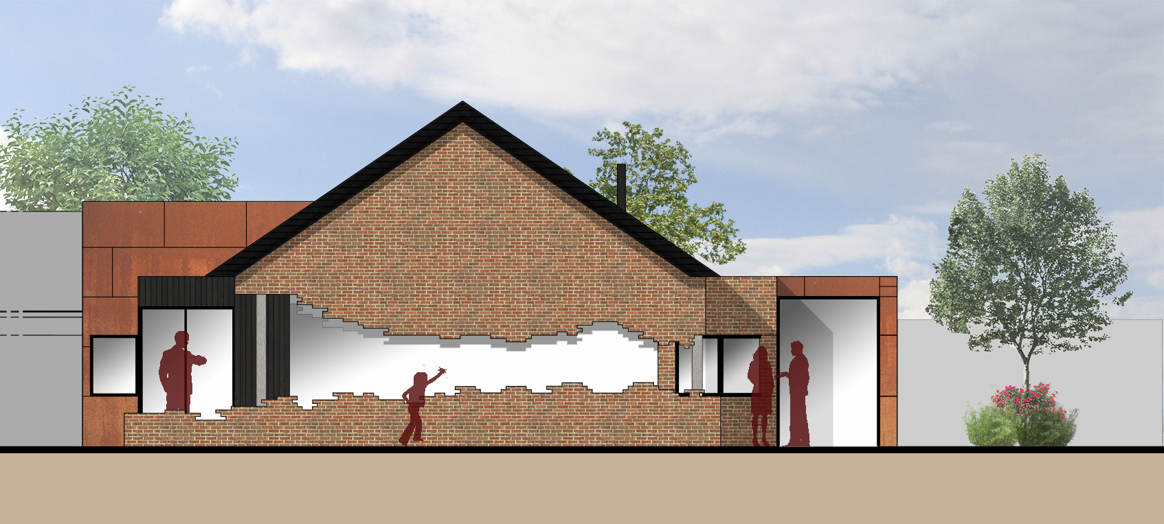 Acier Corten, Briques, Verre et Bois