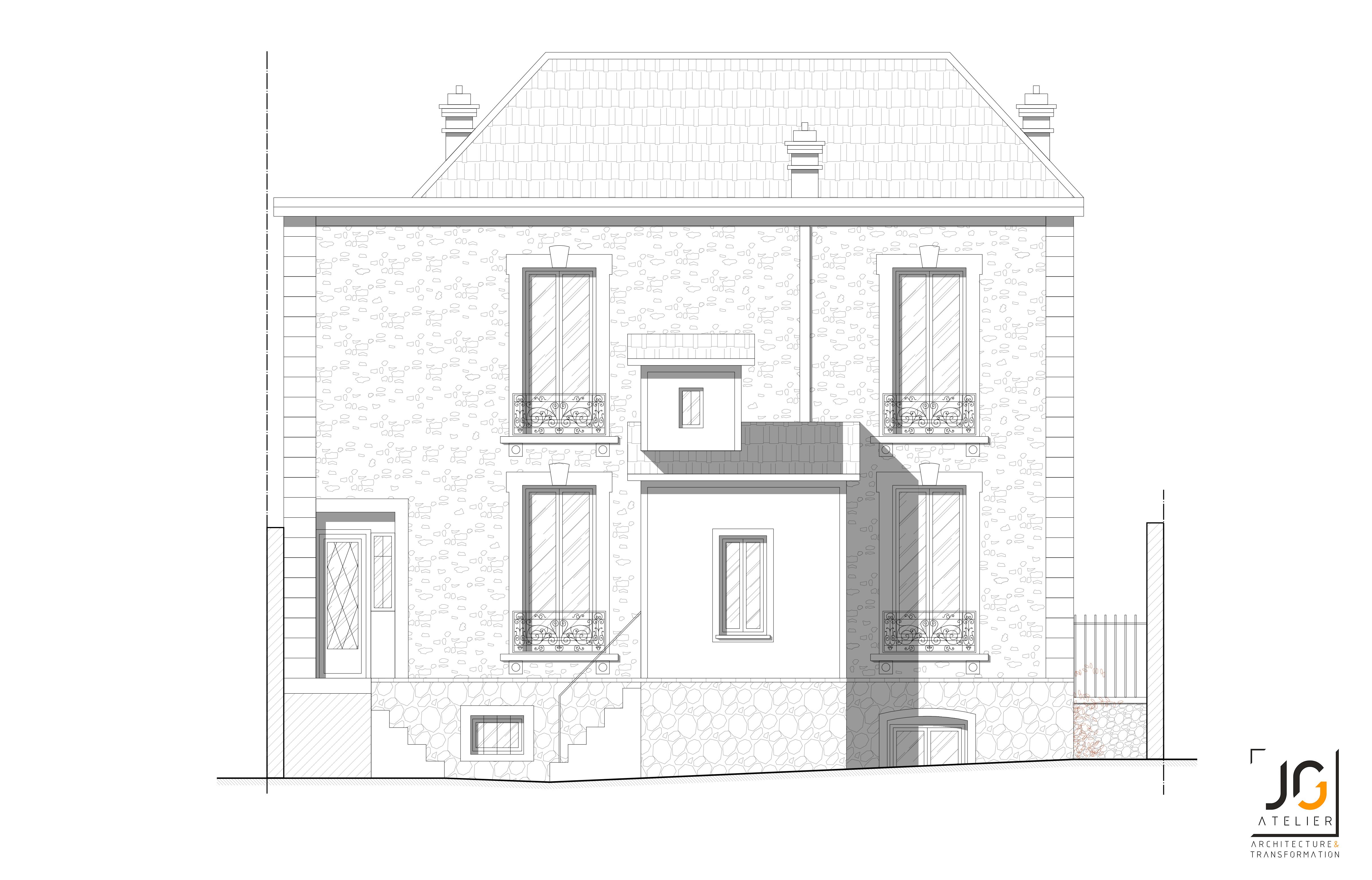 Le projet consiste à valoriser au maximum les différents espaces de cette grande maison et de créer une extension sur l’arrière afin d’harmoniser les différents volumes, tout en respectant le style ancien du bâtiment.