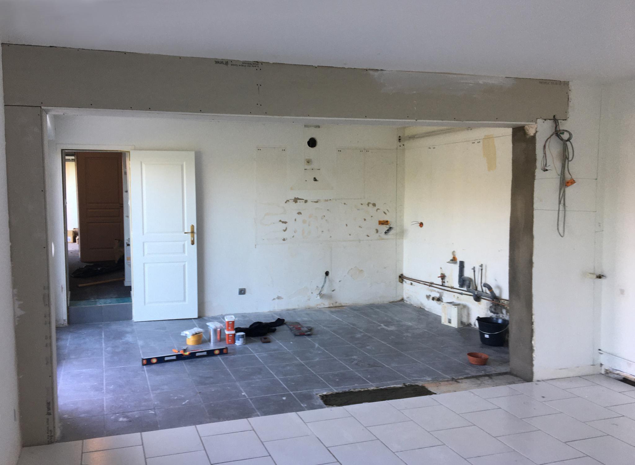 Rénovation totale d’une maison ancienne située à Darnétal. Cette maison était cloisonnée avec de petits volumes car il s’agissait d’un ancien corps de ferme réhabilité en habitation. Située dans un quartier résidentiel sans vis-à-vis, le but était d’ouvrir la cuisine sur les espaces de vie.
