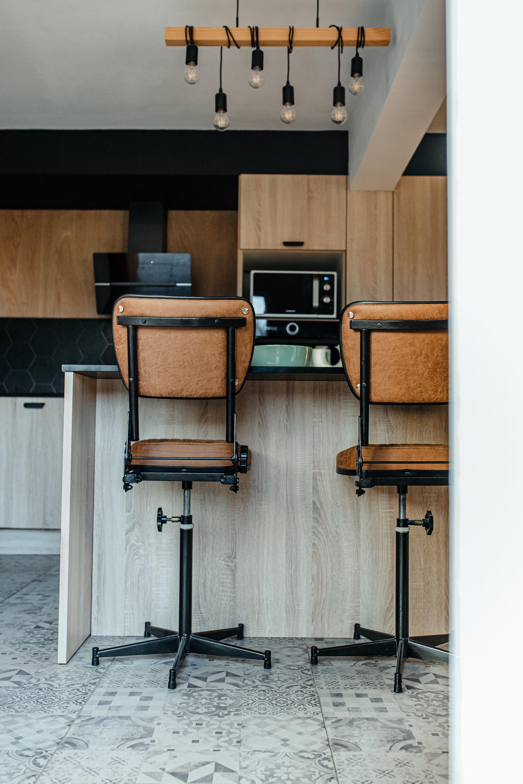Du mobilier conçu sur mesure par l’Atelier 37 a également été mis en place car les clients ne trouvaient pas de chaises dans le commerce adapté à leurs besoins. Des anciennes chaises de la SNCF ont donc été entièrement restaurées et transformées pour venir s’intégrer à ce projet.