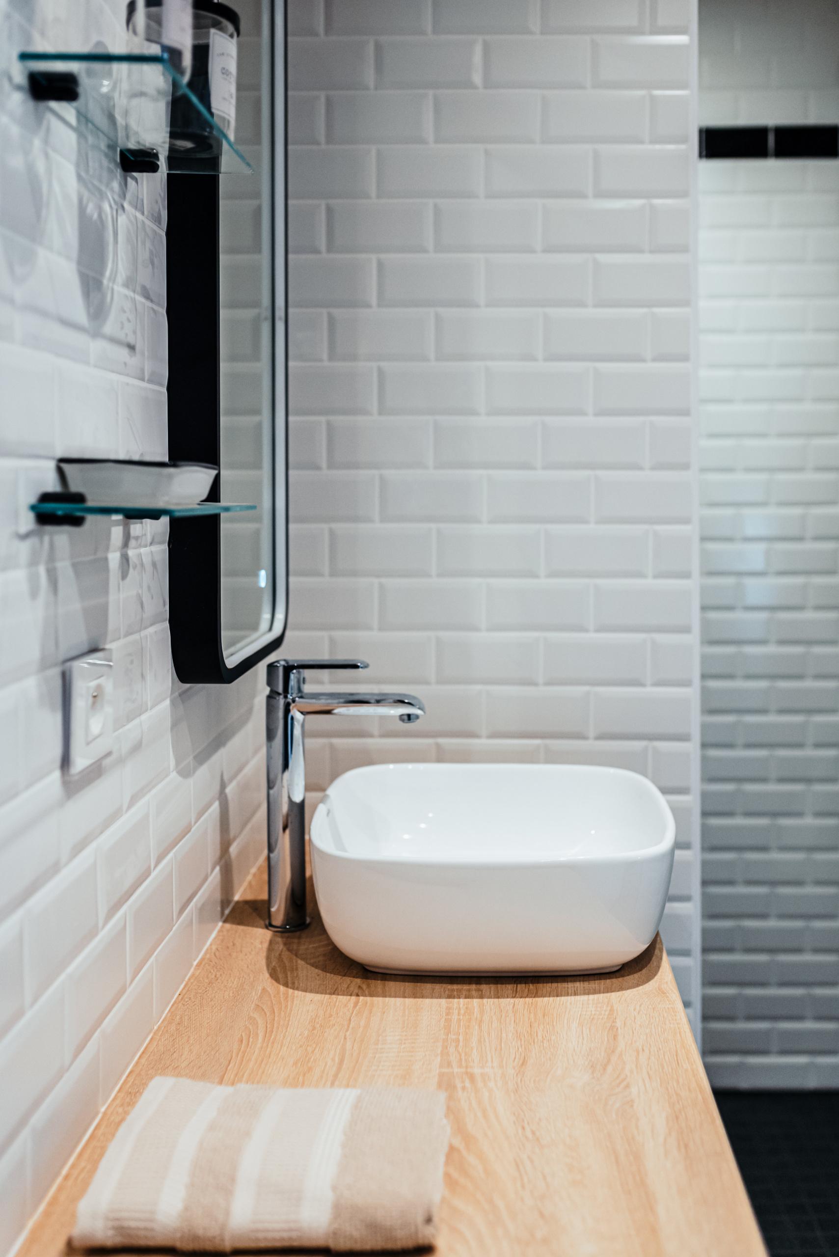 La salle de douche en second jour permet une totale intimité mais conserve des matériaux clairs afin d’optimiser sa luminosité. Le choix de carreaux de métro est également important afin d’avoir une brillance importance afin également de bien refléter la lumière.
